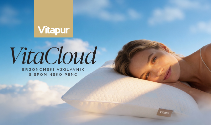Ergonomski vzglavnik VitaCloud s spominsko peno je zasnovan za popolno podporo in poskrbi za bolj sproščen spanec in prijetnejša jutra.